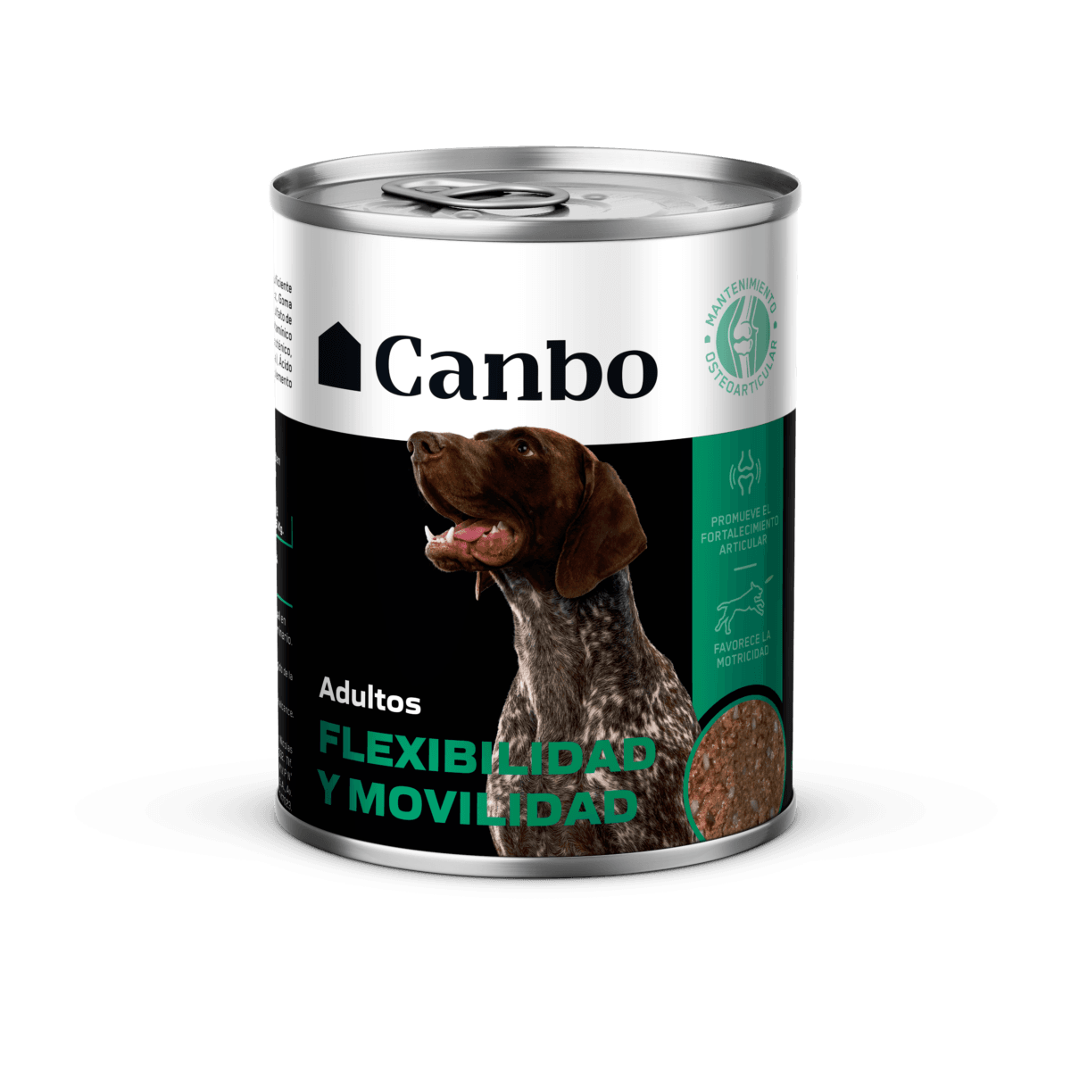 Canbo Flexibilidad y Movilidad es un delicioso paté especialmente formulado para reforzar el mantenimiento de las articulaciones y mejorar la motricidad de perros en la etapa adulta. Características y beneficios: Promueve el fortalecimiento articular. Favorece la motricidad. – Fuentes de Omega 3 y 6. Aporte de glucosamina y sulfato de condroitina. – Formulado con condroprotectores y ácidos grasos esenciales que favorecen el BUEN funcionamiento del sistema osteoarticular, brindando flexibilidad y movilidad a la mascota.